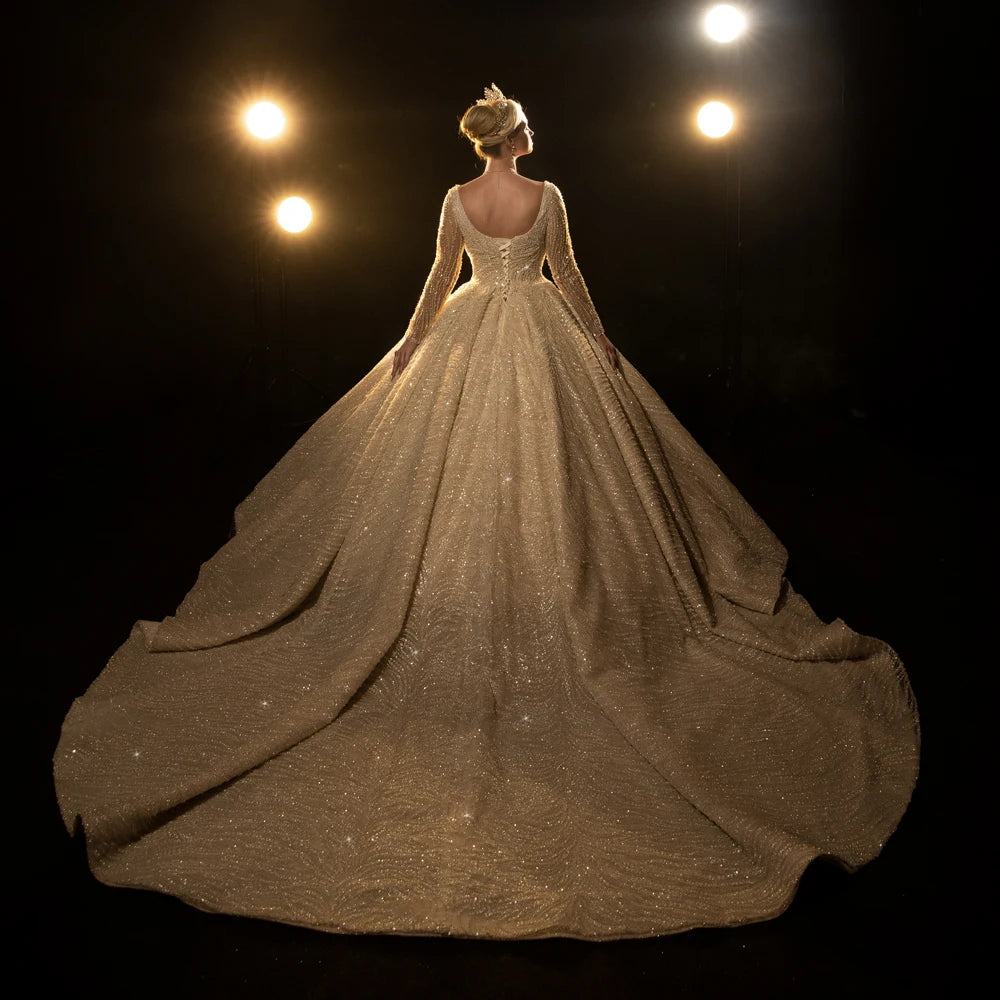 Elevate your bridal elegance with our Luxury Square Collar Long Sleeve Wedding Dress, designed with a structured neckline, refined long sleeves, and delicate detailing for timeless sophistication. Crafted from premium fabrics, this gown offers a flattering silhouette and graceful movement—perfect for any season and every unforgettable entrance.