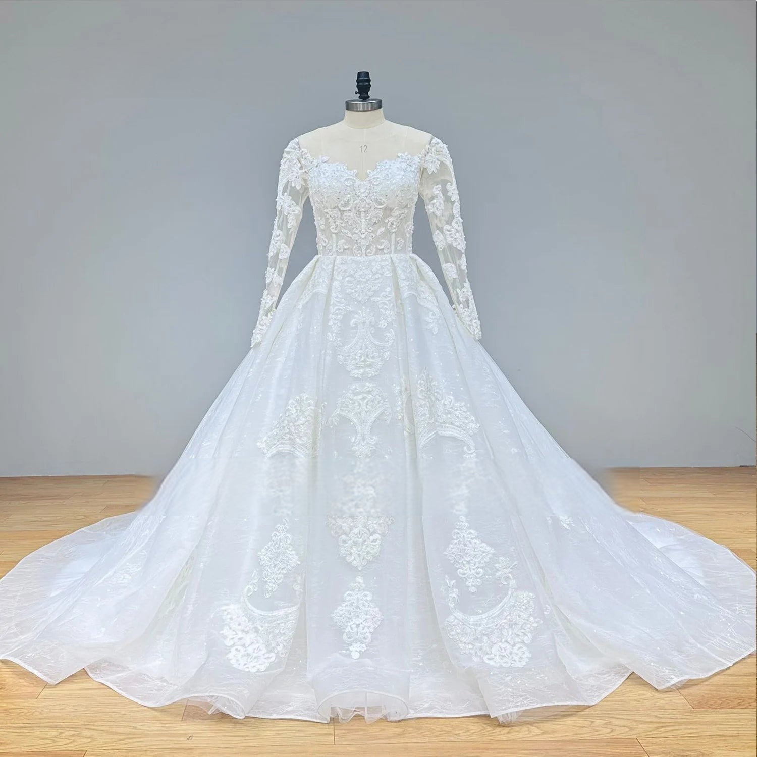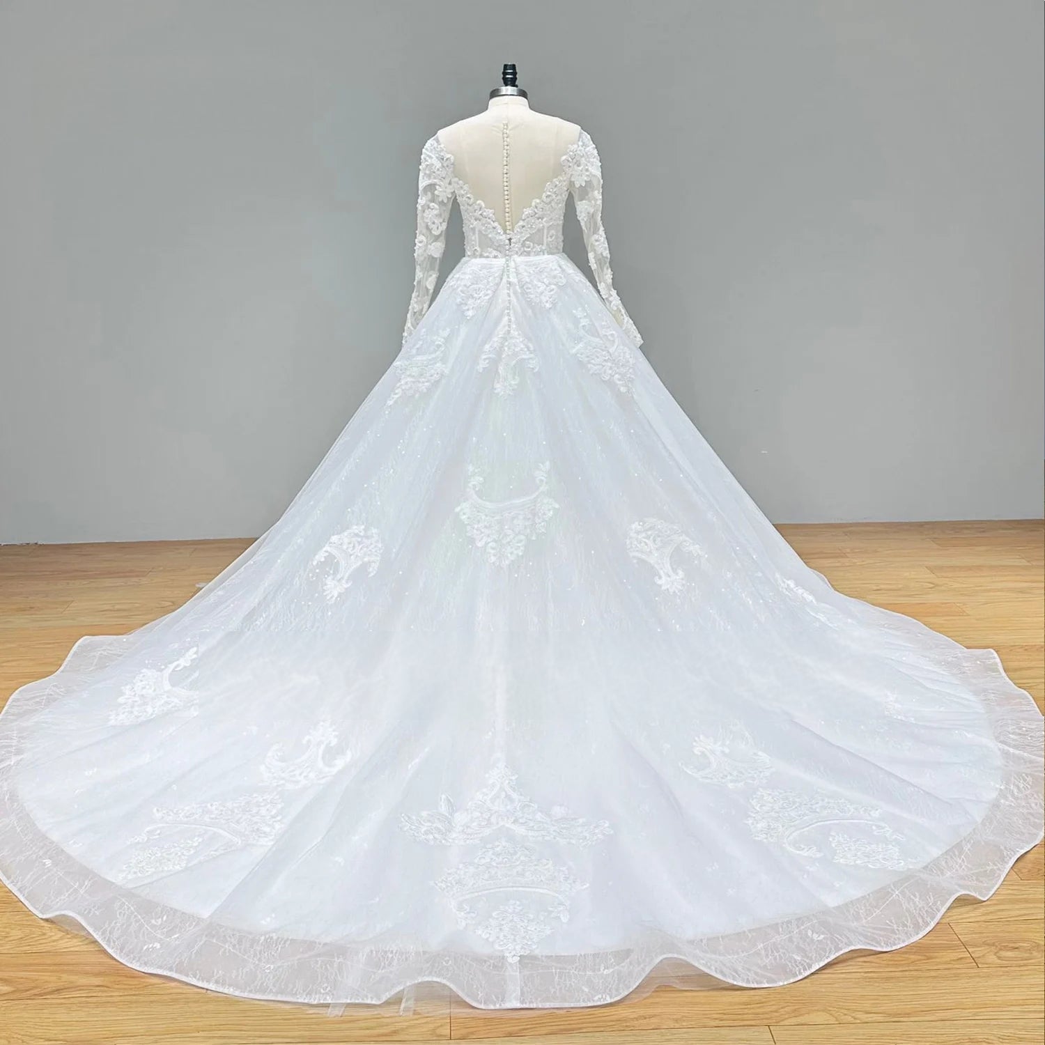 Make a statement on your wedding day with our New Arrival O-Neck Long Sleeve Pearl Button Back Ball Gown Wedding Dress, featuring a timeless neckline, delicate sheer sleeves, and a vintage-inspired pearl button back. Designed with a voluminous skirt and crafted from luxurious fabrics, this elegant gown embodies romance and grandeur, perfect for brides seeking a regal, unforgettable look.