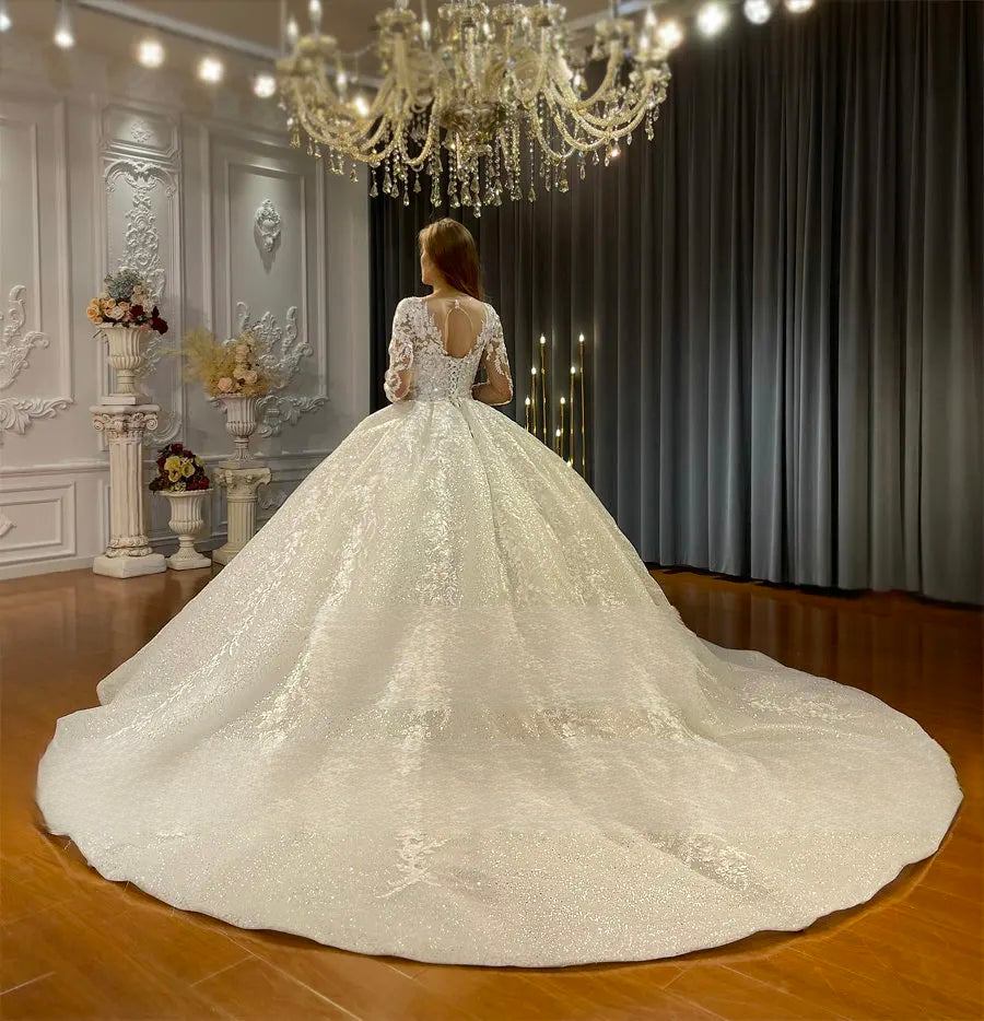 New Model Luxury Ball Gown Wedding Dress with Long Sleeves Elegant Bridal Gown