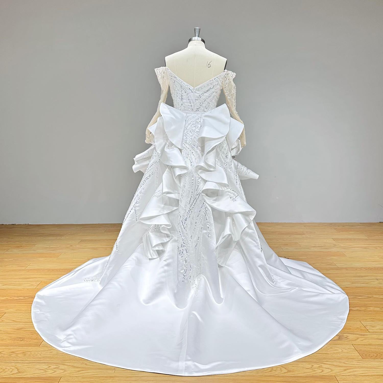 Off Shoulder Long Sleeve Mermaid Wedding Dress with Beads and Detachable Train