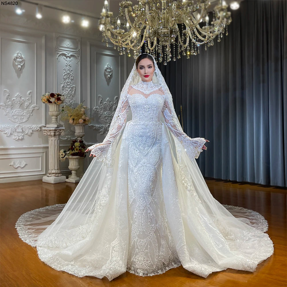 Removable Skirt 2-in-1 Lace Mermaid Wedding Dress with Long Sleeves