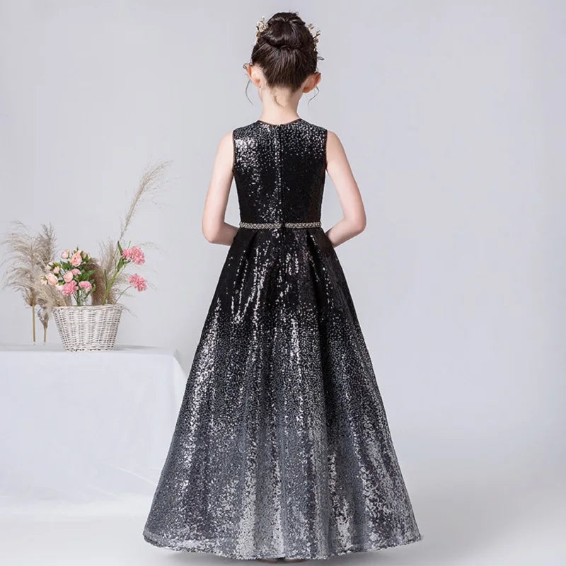 Sparkly O-Neck Flower Girl Dress with Sequins – Long Formal Party Gown