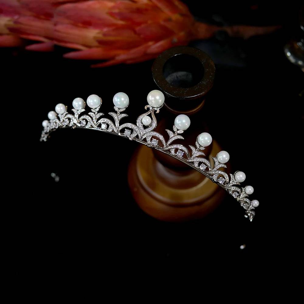 High Quality Pearl Crown CZ Tiara Bridal Hairband Wedding Hair Accessories