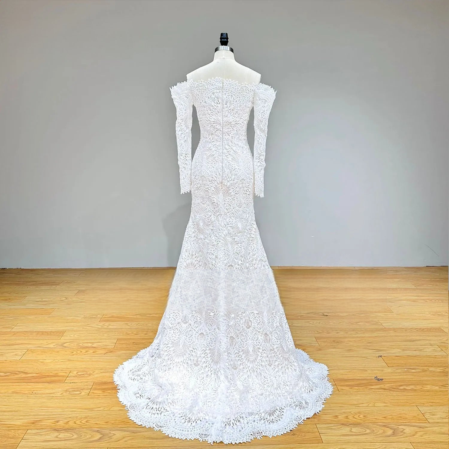This Boat Neck Long Sleeve Lace Mermaid Wedding Dress showcases elegant lace, a flattering silhouette, and a sleek zipper back. Perfect for the modern bride, it blends timeless charm with contemporary sophistication.