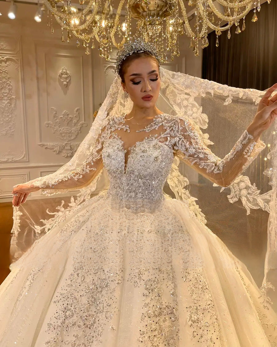 Luxury Long Sleeve Ball Gown Bridal Dress Elegant Wedding Gown