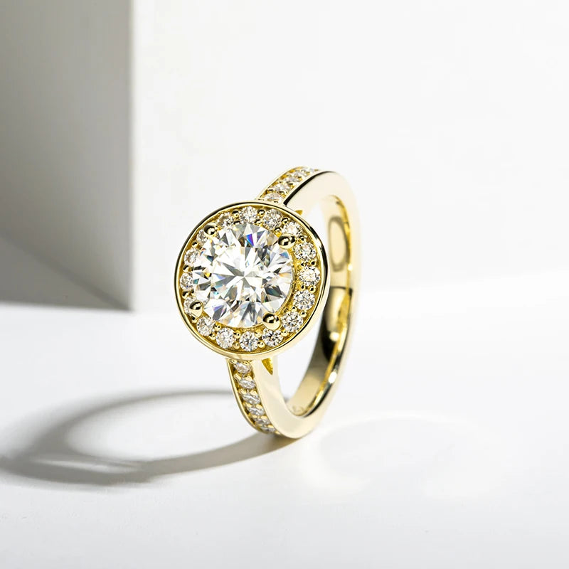 2 Carat All Moissanite 925 Sterling Silver Engagement Jewelry 14K Yellow Color Ring For Women