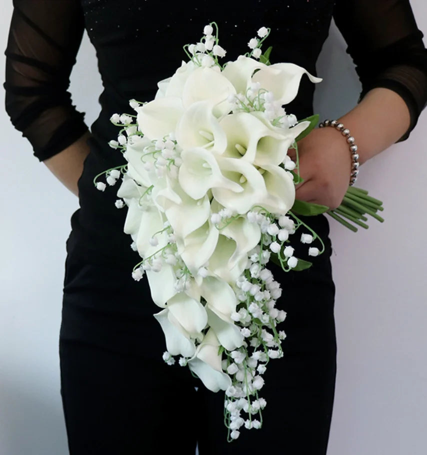 AYiCuthia Royal White Waterfall Bridal Bouquet Artificial Flowers with Pearls