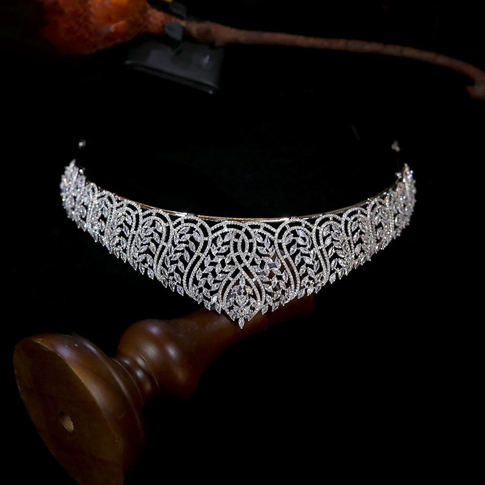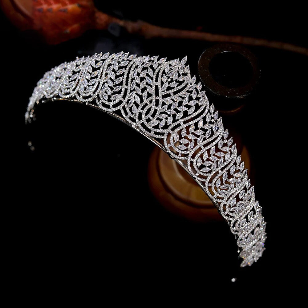 Turn your wedding into a royal celebration with the Classic Royal Zirconia Wedding Crown Tiara from ELSI John. Adorned with sparkling zirconia crystals and crafted with timeless elegance, this tiara adds regal charm to your bridal look. Shine like a true queen on your special day.