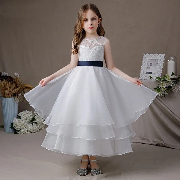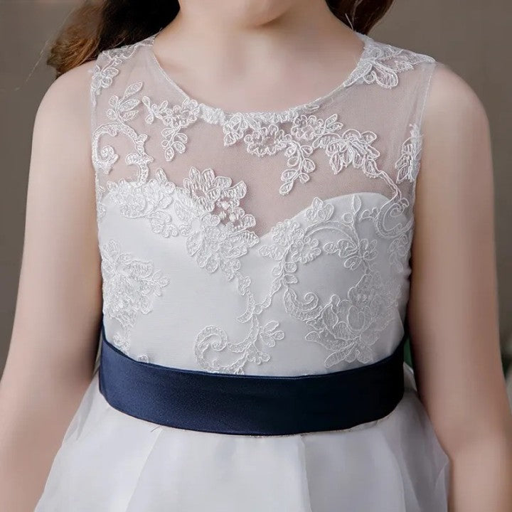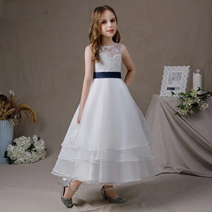 First Communion Sleeveless Tea-Length Flower Girl Dress