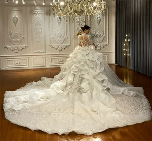 Lace Applique Crystal Beading Royal Train Luxury Wedding Dress