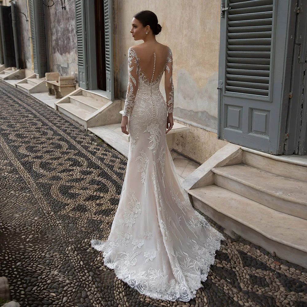 Embark on your wedding journey in style with our Long Sleeve Beading Sequins Appliques Mermaid Wedding Dress, featuring exquisite details and a flattering mermaid silhouette. With delicate beading, a detachable train, and timeless elegance, this gown is designed to make your special day unforgettable.