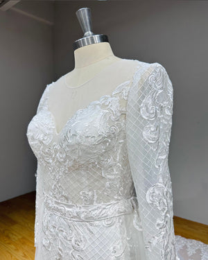 This Long Sleeve Mermaid Wedding Dress features a detachable train and a bold cut-out back, blending timeless elegance with modern sophistication. Designed to flatter your curves and crafted with exquisite detail, it's the perfect choice for brides seeking both glamour and versatility on their special day.