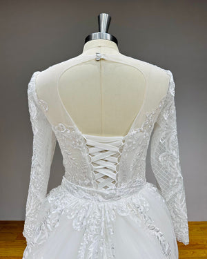 Long Sleeve Mermaid Wedding Dress with Detachable Train and Cut-out Back