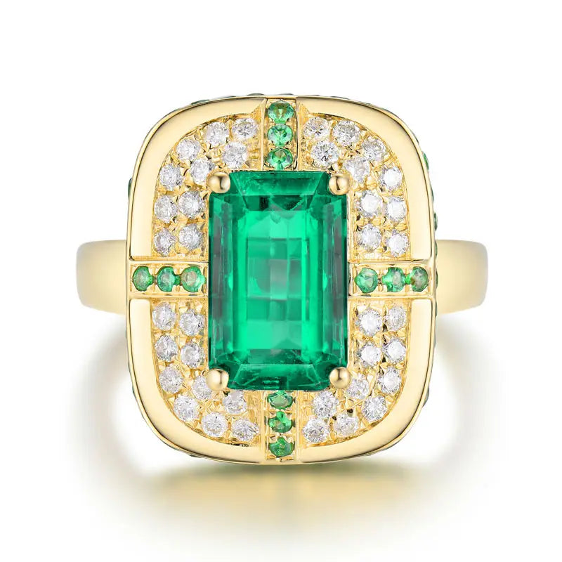 18KT Gold Ring with Green Emerald and Diamonds for Women – Wedding & Engagement Jewelry
