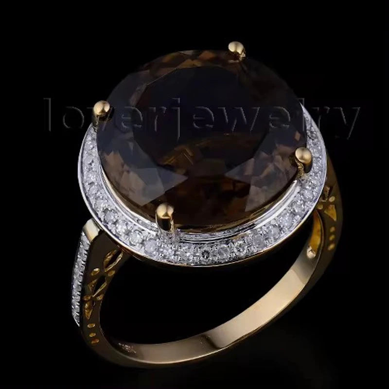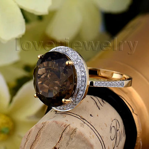 18K Yellow Gold Smoky Topaz & Diamond Ring – Elegant Fashion Jewelry for Women