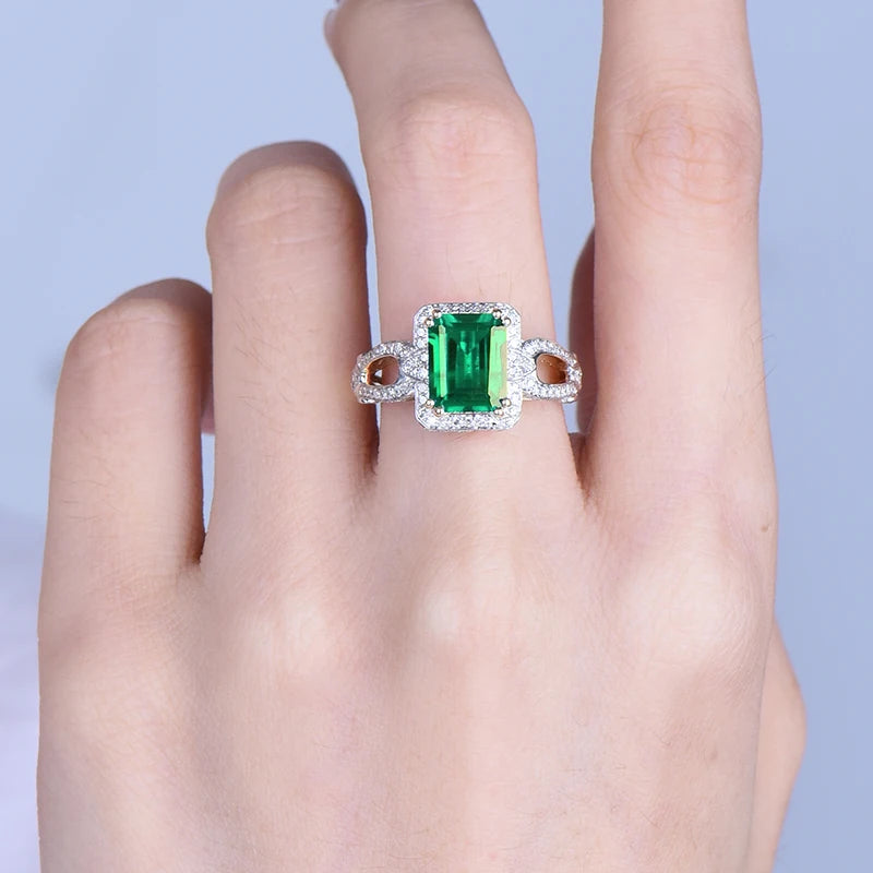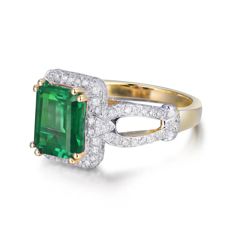 Women’s 6x8mm Emerald Ring in 14Kt Yellow Gold with Diamonds