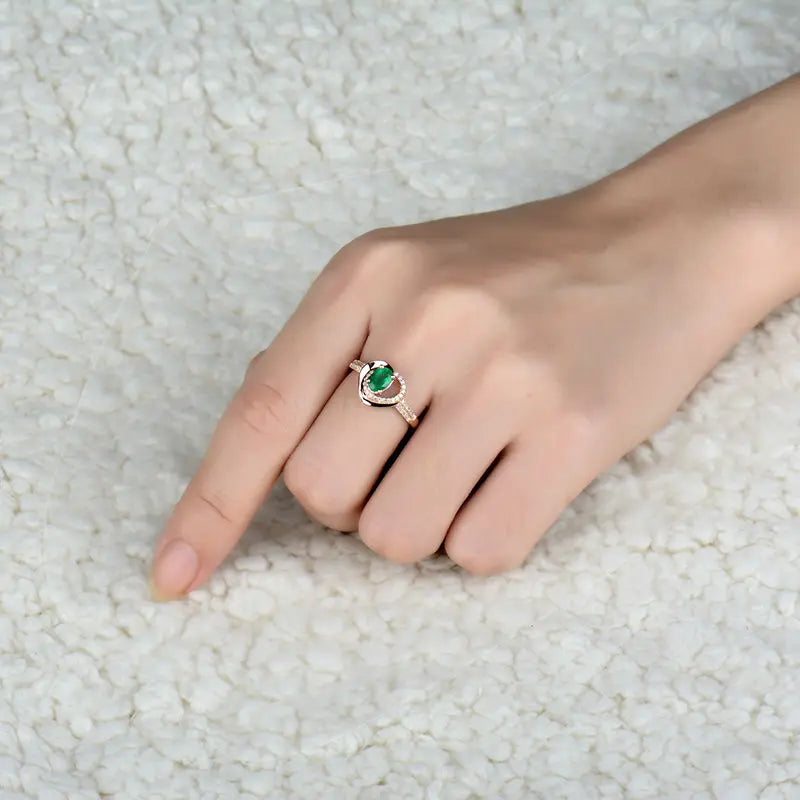 Celebrate love and elegance with our Women's 18Kt Rose Gold Emerald Ring, featuring a vibrant 4x6mm emerald that symbolizes growth and new beginnings. Set in romantic rose gold, this timeless piece is perfect for anniversaries, engagements, or meaningful everyday wear.