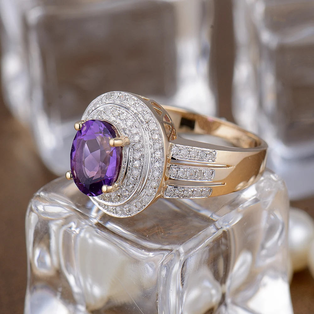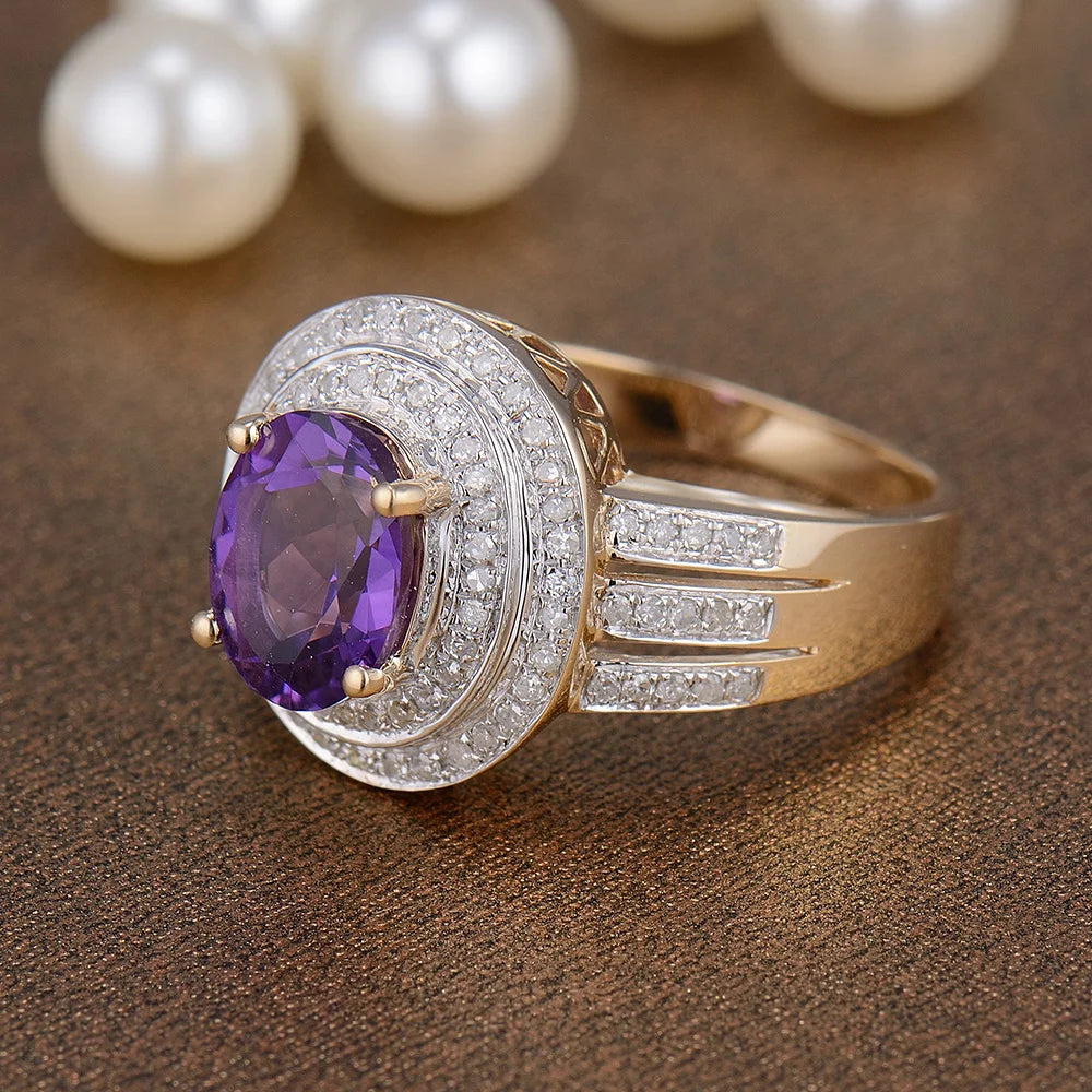 14K Yellow Gold Oval Amethyst & Diamond Ring – Gift for Anniversary