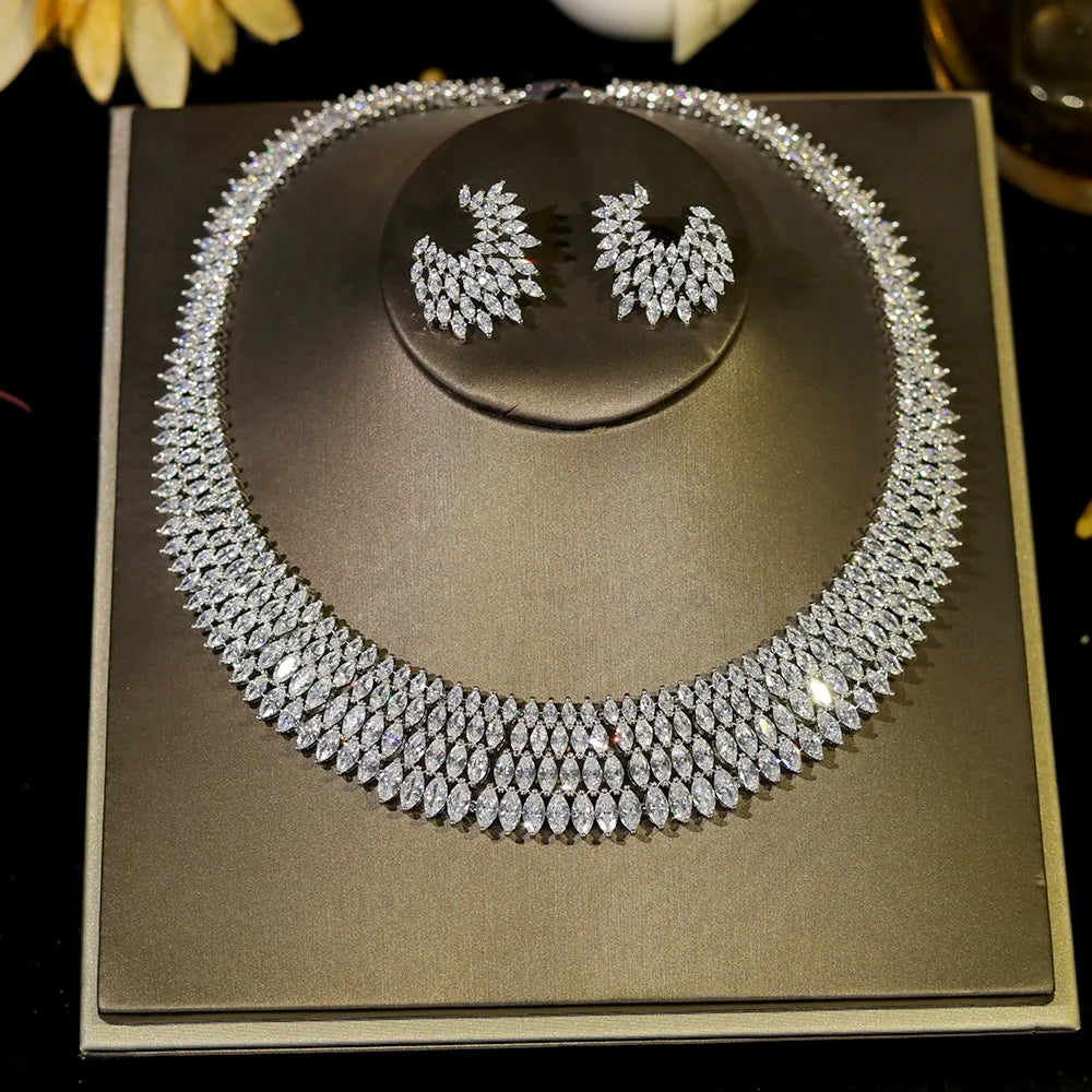 Luxury Choker Betrothal Jewelry Set Big Necklace for Bridal Wedding and Dinner Dress