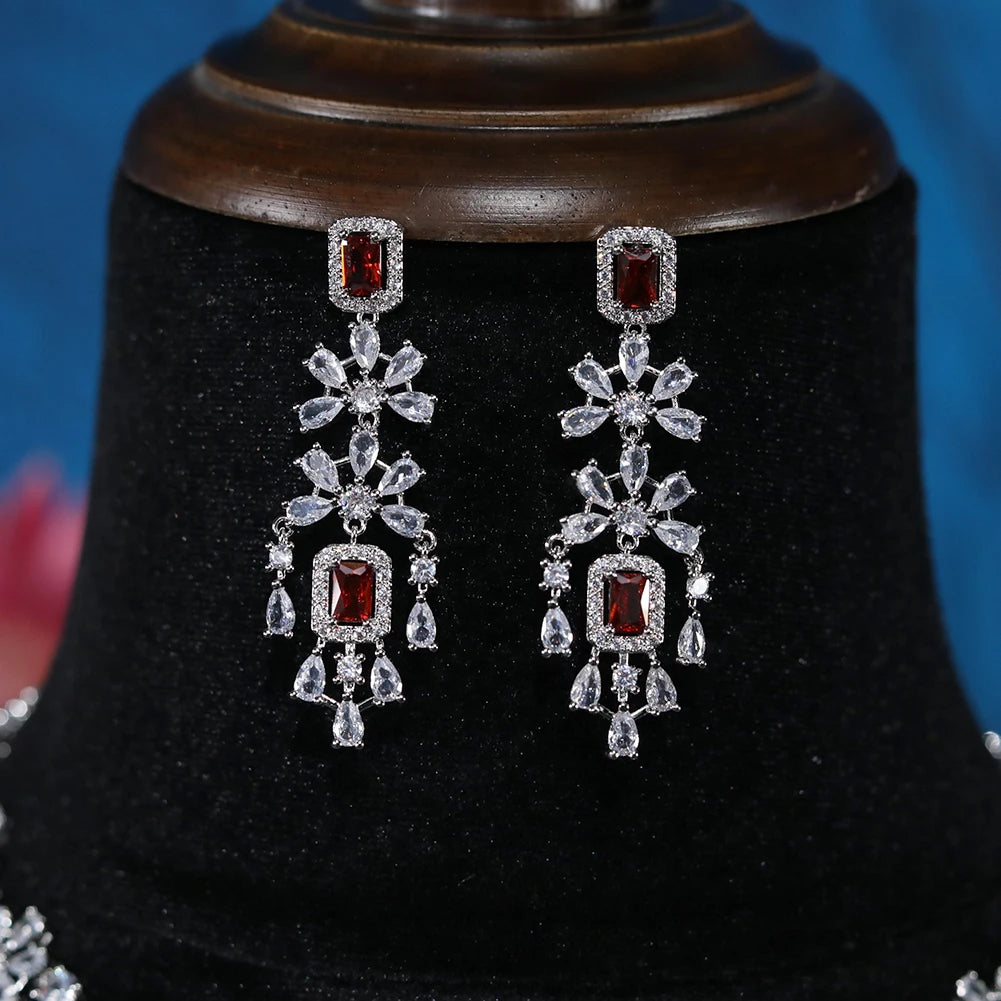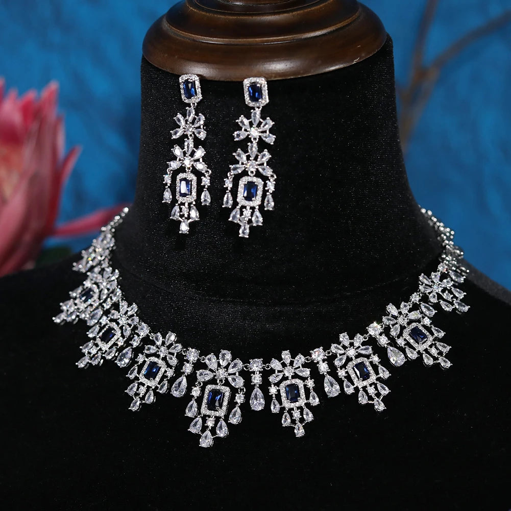 Luxury Crystal 2pcs Geometric Necklace & Earring Set Dubai Bridal Zirconia Jewelry