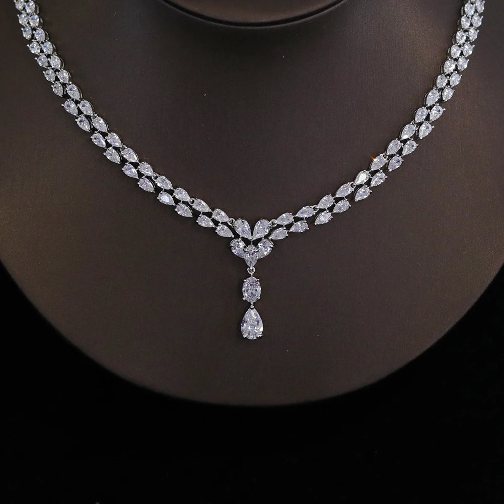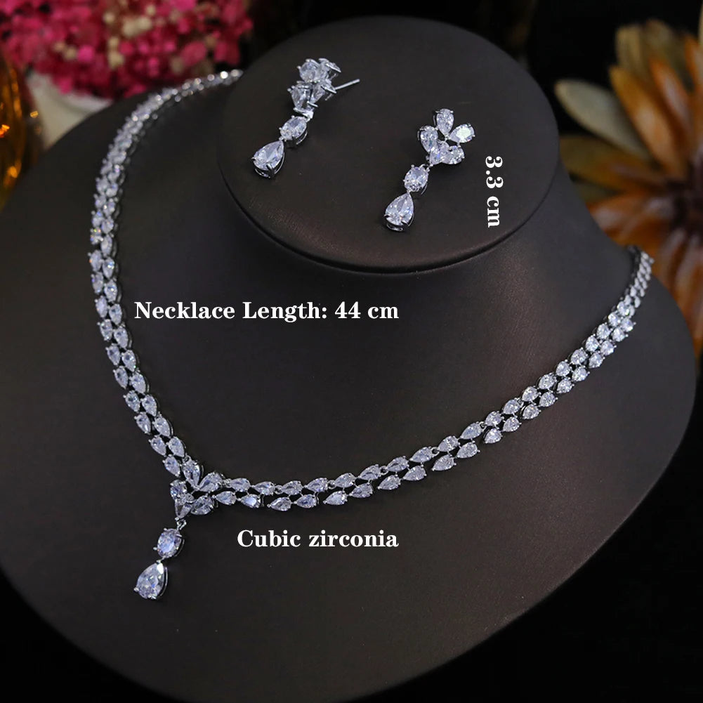 Luxury Cubic Zirconia Water Drop Necklace and Earrings Set for Women
