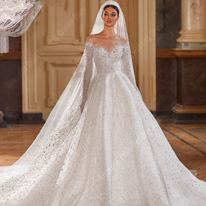 Elevate your bridal look with our Luxury V-Neck Wedding Dress, featuring a shimmering sequin A-line skirt and elegant long sleeves for timeless sophistication. This floor-length gown combines classic style with modern glamour to make your wedding day unforgettable.