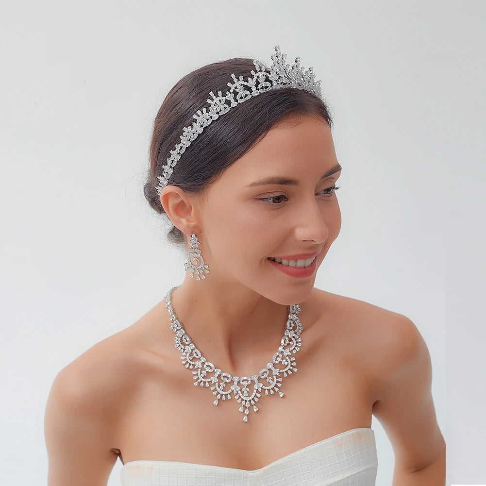 Enhance your bridal elegance with our New Design Sparkling Bridal Tiara. Adorned with dazzling cubic zirconia and intricate detailing, this comfortable headpiece adds timeless glamour to any wedding hairstyle. A perfect finishing touch for your special day.
