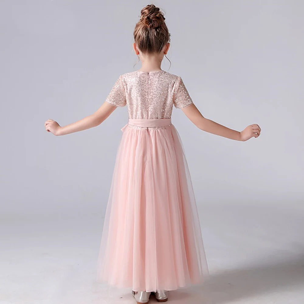 Turn every special moment into a fairytale with this enchanting Pink Tulle Flower Girl Dress. Sparkling sequins and soft tulle make it perfect for weddings, birthdays, and magical twirls.