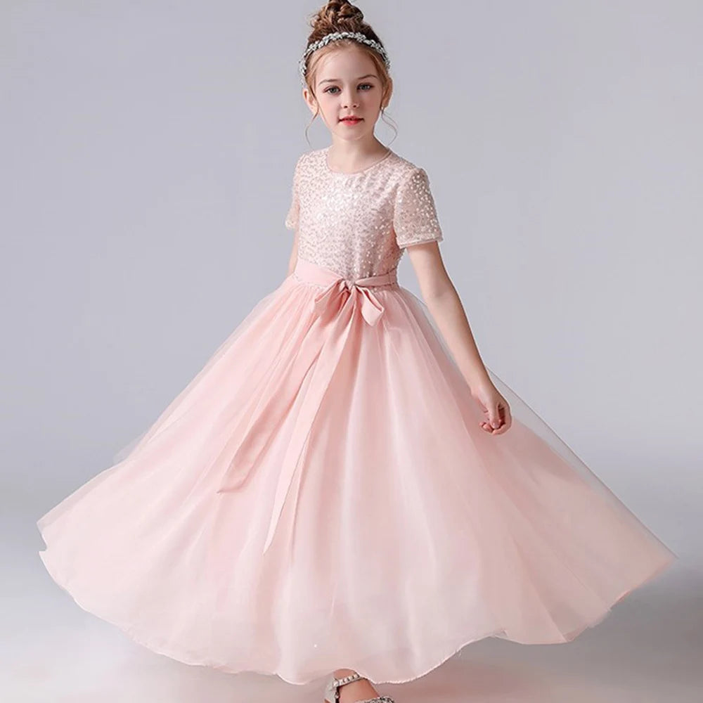 Pink Tulle Flower Girl Dress with Sequins for Weddings and Parties