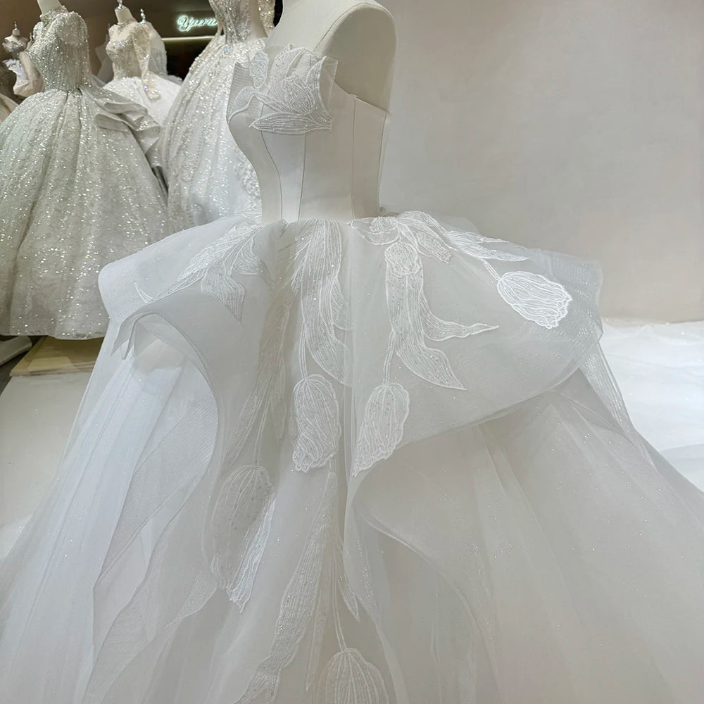 Ivory Glitter Strapless Princess Wedding Dress Sleeveless Bridal Ball Gown