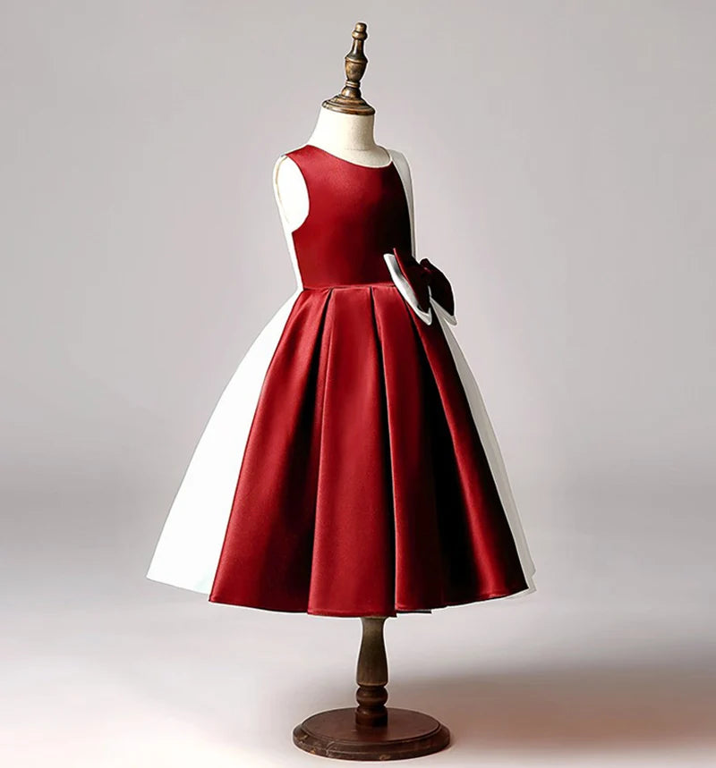 This satin flower girl dress with a charming bow is perfect for weddings and special occasions, offering a luxurious feel and elegant style. Designed for comfort and movement, it complements all body types and suits both traditional and modern themes.