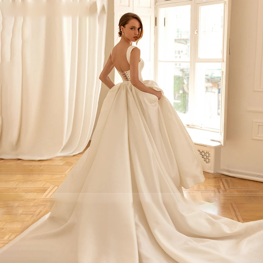 Satin Sleeveless A-Line Wedding Dress Bridal Gown Vestidos De Novia