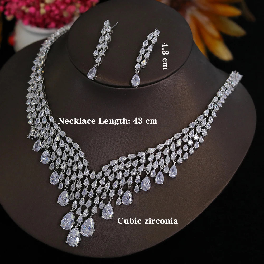 Shiny AAA Cubic Zirconia Bridal Necklace Set 2pcs for Wedding Party