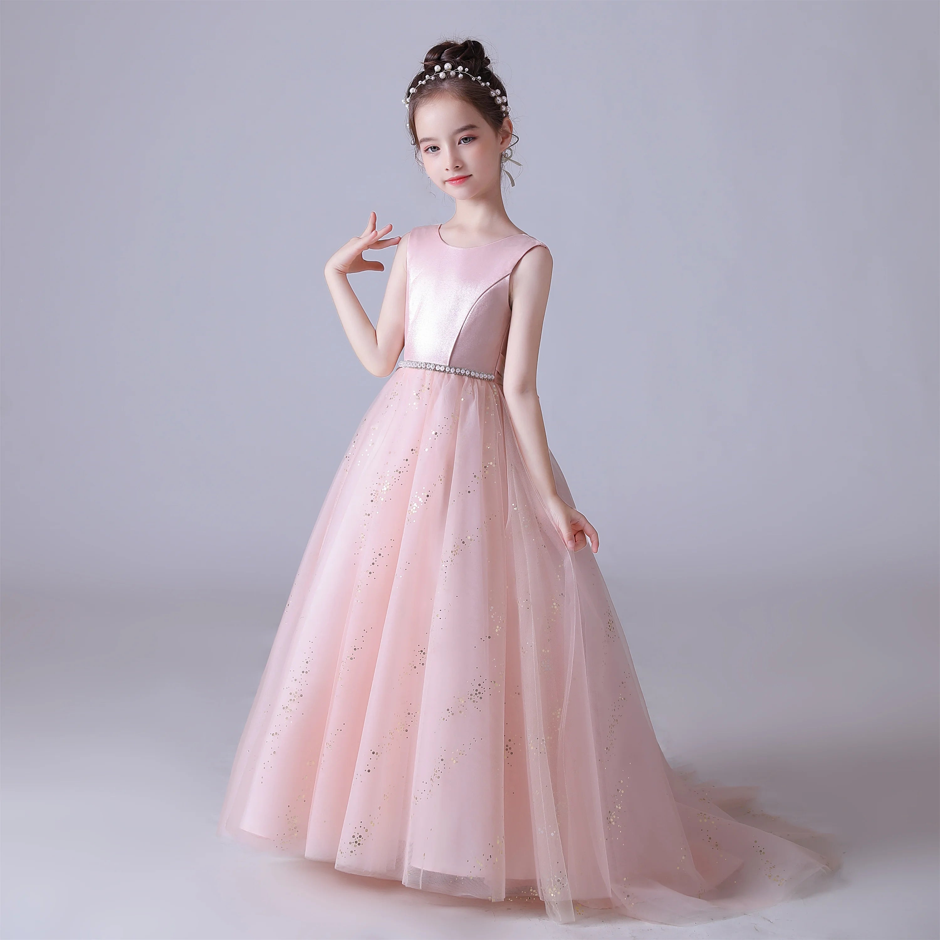 Dress your little one in this stunning shiny tulle flower girl dress, designed to make her feel like a true princess. The sleeveless style keeps her comfortable and cool during special occasions. Featuring a large, elegant bow at the waist, this gown adds a charming and playful touch. Made from lightweight tulle fabric, it offers a soft and breathable fit perfect for all-day wear. Ideal for birthday parties, weddings, and other formal events, this dress ensures your child stands out beautifully. Its classic princess silhouette flatters every young girl and suits various celebrations. The high-quality craftsmanship guarantees durability while maintaining a delicate, graceful look. This dress pairs perfectly with sparkly shoes and accessories to complete the fairy-tale appearance. Available in multiple sizes to fit toddlers and young girls comfortably. Make your child’s special day unforgettable with this elegant and shiny tulle princess gown.
