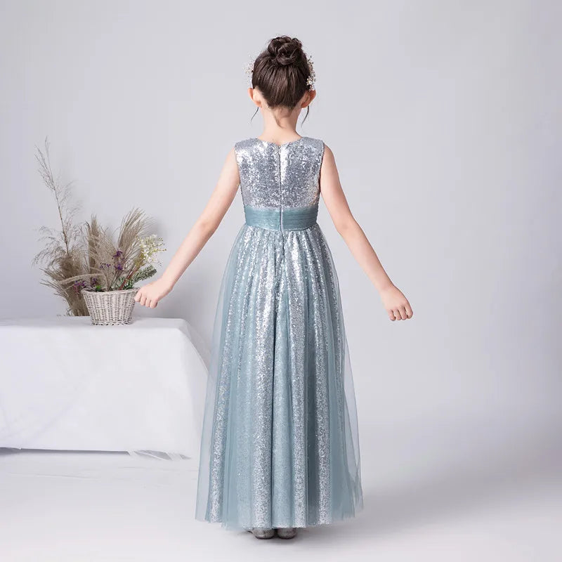 Let your little one shine in this sparkly junior bridesmaid dress, featuring delicate sequins and a flowing tulle skirt. Perfect for weddings, parties, or special occasions, it blends elegance, comfort, and magical charm.