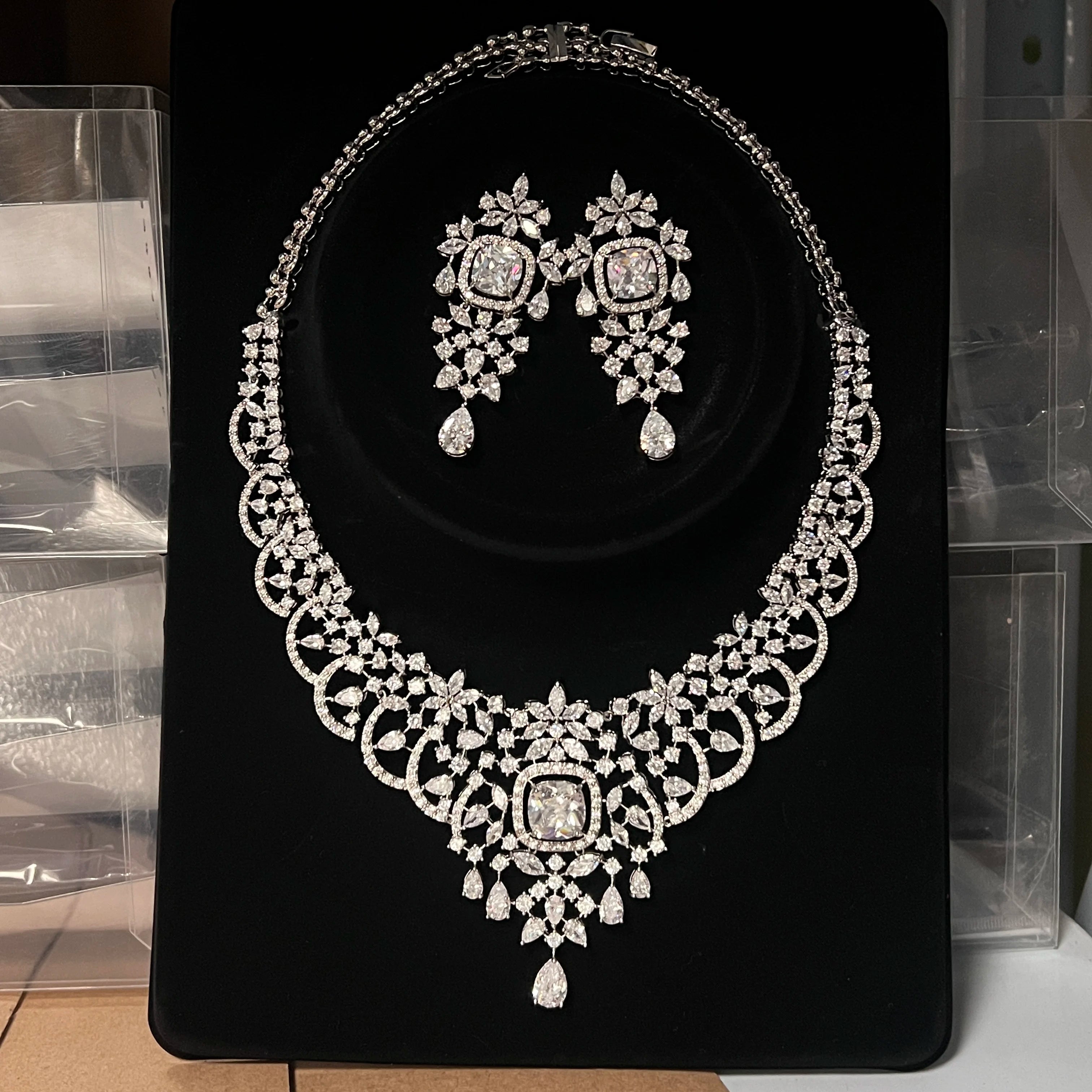 White Cubic Zirconia Necklace Set for Women Dubai Bridal Jewelry 2Pcs